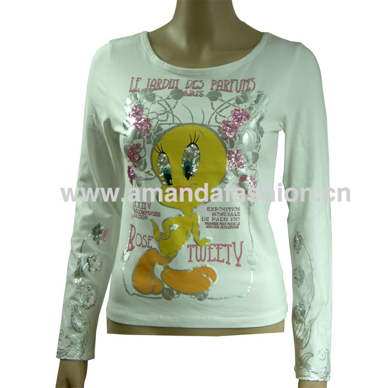 Ladies t-shirt with print and sequins