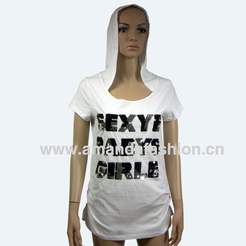 Ladies hoody t-shirt with sequins