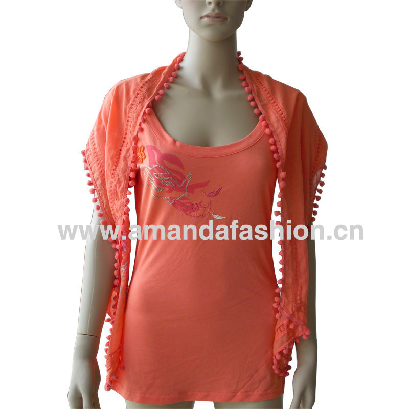 Ladies t-shirt with woven showl
