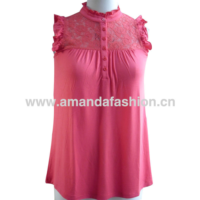 Ladies sleeveless t-shirt with lace
